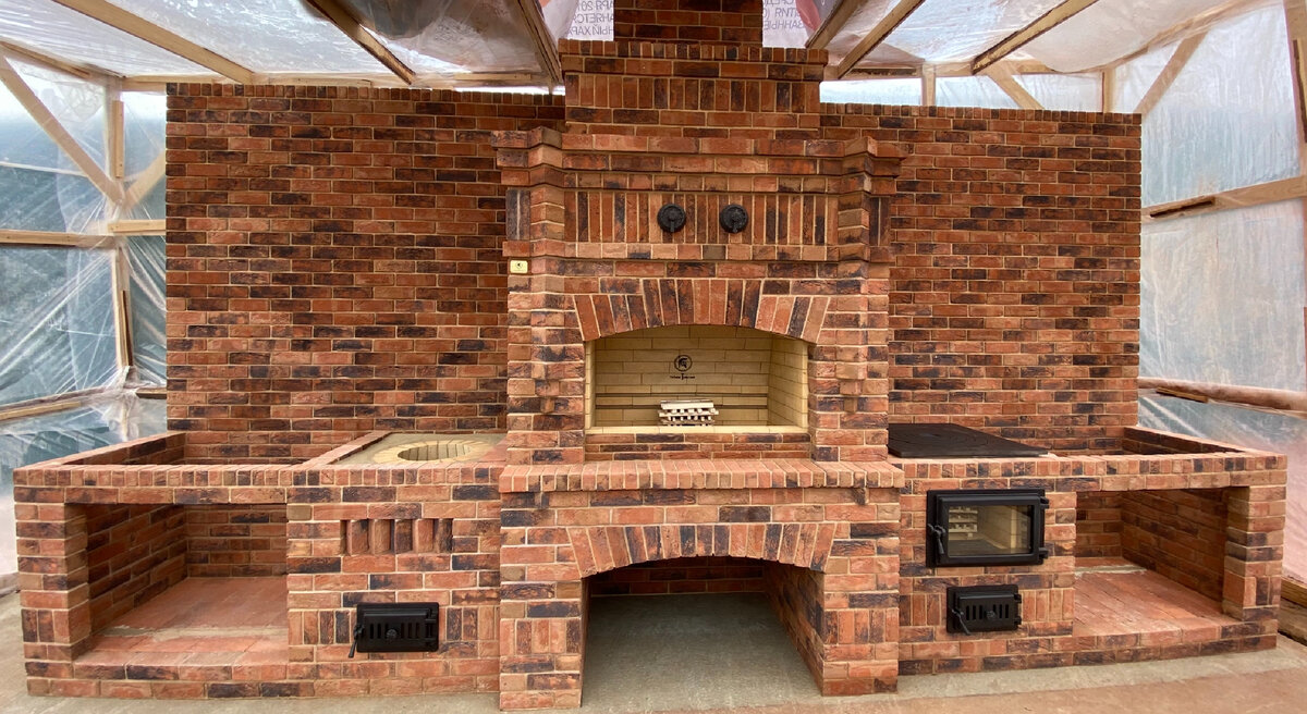 Барбекю комплекс из кирпича ручной формовки казан мангал тандыр в открытой беседке от команды Печник Тульский