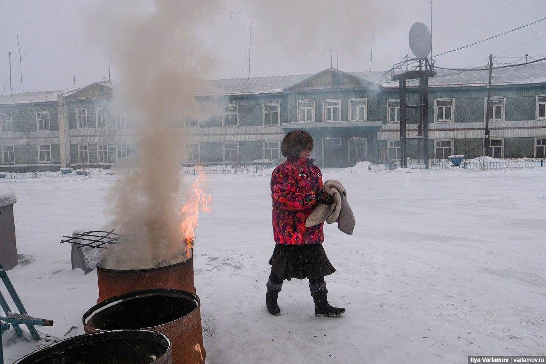 Первый вопрос, который возникает, когда смотришь на всё это великолепие: зачем тут вообще живут люди? Просто тут есть хоть какая-то работа. Медсестра получает 45 000, водитель фуры за "ходку" по зимнику – 60 000, младший сотрудник в администрации – 40 000. Да и люди хорошие. Когда холодно, люди всегда хорошие. Плохие люди замерзают и уезжают на юг.