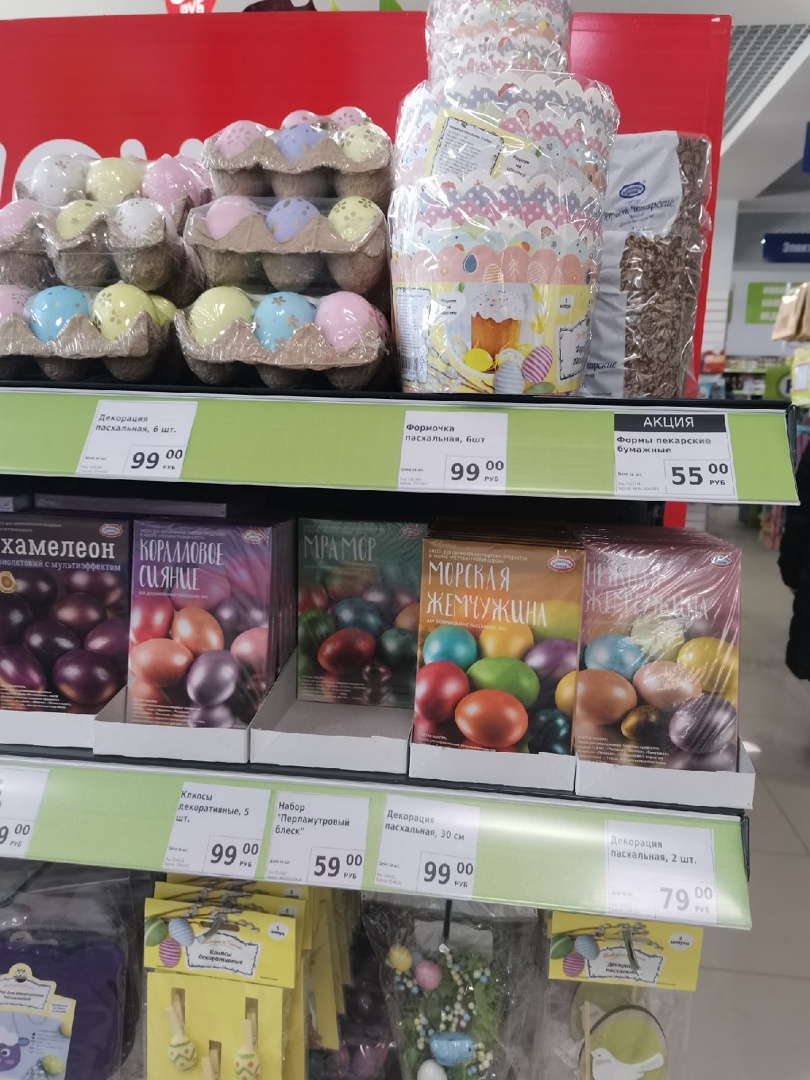 Что же, весна приносит нам многочисленные новинки в самых разных магазинах, поэтому предлагаю сегодня прогуляться по "FixPrice", дабы посмотреть что нас там ждет. Во-первых, это новая коллекция товаров, которая приурочена к Пасхе, а, во-вторых, на полках появились "желтые ценники", которые позволяют нам немного сэкономить, если при покупке мы воспользуемся картой магазина. Так и хочется сказать: - наконец-то она пригодилась. А то сколько бы я не покупала, толку от нее не было никакого, баллы не копились особо, скидок я не замечала, а тут, когда еще и цены выросли, выгодные предложения были бы как нельзя кстати. То, что цены стали выше, я заметила и по средствам по уходу за собой, и по напиткам, и по некоторым продуктам. Но давайте более детально разбираться с обновлениями. Чуть меньше, чем через месяц, будет Пасха, а потому можно начинать готовиться к ней, если у вас есть такая необходимость. В магазине уже появились тематические товары, так что посмотрим сколько они стоят и что из себ