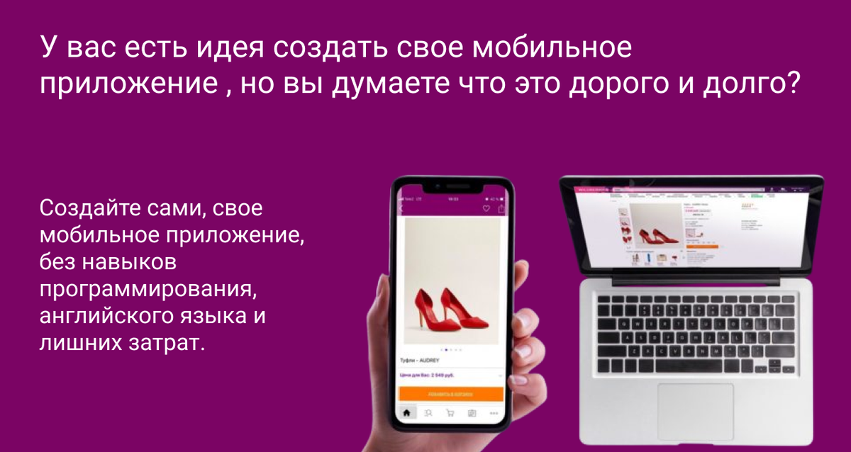 Создайте свое приложение, аналог Авито, Wildberries. Мир меняется очень быстро и если не бежать впереди, а идти в ногу со времени, то уже опоздал. Требования рынка и средства коммуникации с клиентом очень быстро меняются. Многие, хотят быть в тренде и создать мобильное приложение для своего бизнеса, что бы удержать своих клиентов и иметь с ними постоянную связь. Клиент самая главная ценность. Ведь деньги идут от людей. У кого-то есть невероятная идея создания своего собственного мобильного приложения или желание создать приложение для постоянного пассивного дохода и это прекрасно!!! Переходите по ссылке, пройдите бесплатный тест и поймете сможете ли вы создать мобильное приложение самостоятельно. https://vk.com/app5898182_-168524711#u=1393234&s=1586511 Но большинство упирается в непреодолимую преграду, это стоимость разработки приложения, она плавает около 2 000 000 руб. А по времени займет от 6 месяцев. Это провал. Как результат, идея остается идеей и бизнес без лоял