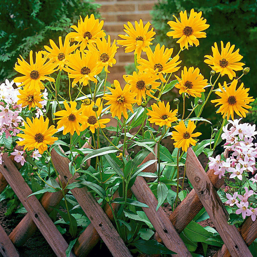 Уникальное растение, которое вас и накормит, и вылечит, и участок украсит. Думаете так не бывает? На одном месте это растение может расти до сорока лет. Хотите отгородиться от соседей или спрятать неприглядный сарай? Возможно, вам нужна живая изгородь в конце или по бокам большого участка. Это растение подойдет для всех этих целей. Топинамбур - ко всему прочему еще и порадует вас длительным цветением, а вот уход за ним самый минимальный. Топинамбур - близкий родственник подсолнечника, нетребователен к почве и климату. В народе его называют "земляная груша", "земляное яблоко". Впервые я столкнулась с этим растением в Краснодарском крае. У нас был большой участок, конец которого находился у полупересохшей речки. Так вот в течение всего лета внизу участка стоял "лес" неизвестного мне растения, которое очень красиво и обильно цвело желтыми цветками напоминающими цветки рудбекии или подсолнечника. Видно, что растениям там было влажно, светло и тепло, высота их была не менее двух метров, а