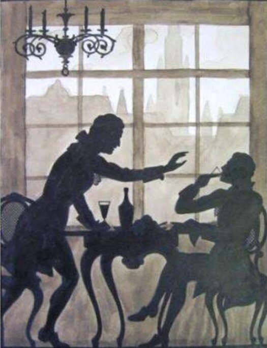Что так радует Моцарта? Возможно, то, что его произведения, пусть и в таком виде, шагнули за пределы театра? Ведь вряд ли трактирный музыкант стал бы играть что-нибудь, не пользующееся популярностью.