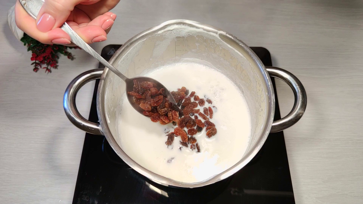 Высыпаю изюм в горячее молоко, и готовлю вкусную выпечку к чаю