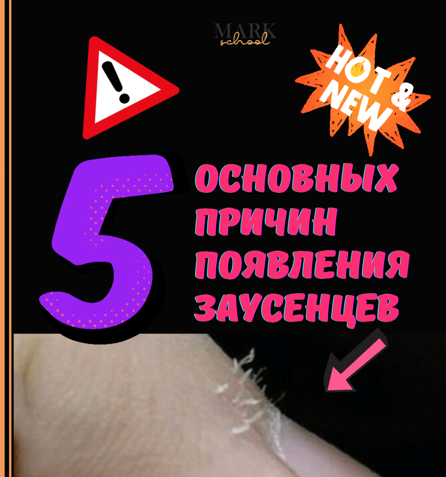 КАК или ПО КАКОЙ ПРИЧИНЕ ПОЯВЛЯЮТСЯ ЗАУСЕНЦЫ Заусеницы - очень частая проблема, особенно у подростков. Заусенец или заусеница - это разрыв кожи вокруг ногтевой пластины. Руки с заусенцами выглядят неопрятными, нездоровыми, заусенцы провоцируют появление ранок, цепляются за одежду и делают больно. Разберемся в причинах появления заусенцев: 1 причина - это сухость кожи, в основном , от воздействия окружающей среды: холод, вода, перепады температуры, химические средства, антисептик 2 причина появления заусенец - дефицит в организме жиров и витаминов А и Е !!!! 3 причина. От заусенцев страдают любители погрызть ногти, так как эта привычка ослабляет ногтевое ложе и создает микротравмы кожи вокруг ногтевой пластины 4 частая причина образования заусенец - плохо сделанный маникюр!!! Если мастер неправильно отрезал кутикулу, задев верхний слой кожи, то этот верхний слой трескается и появляются заусенцы!!! Либо при аппаратном маникюре мастер спиливал кутикулы больше необходимого, или слишком