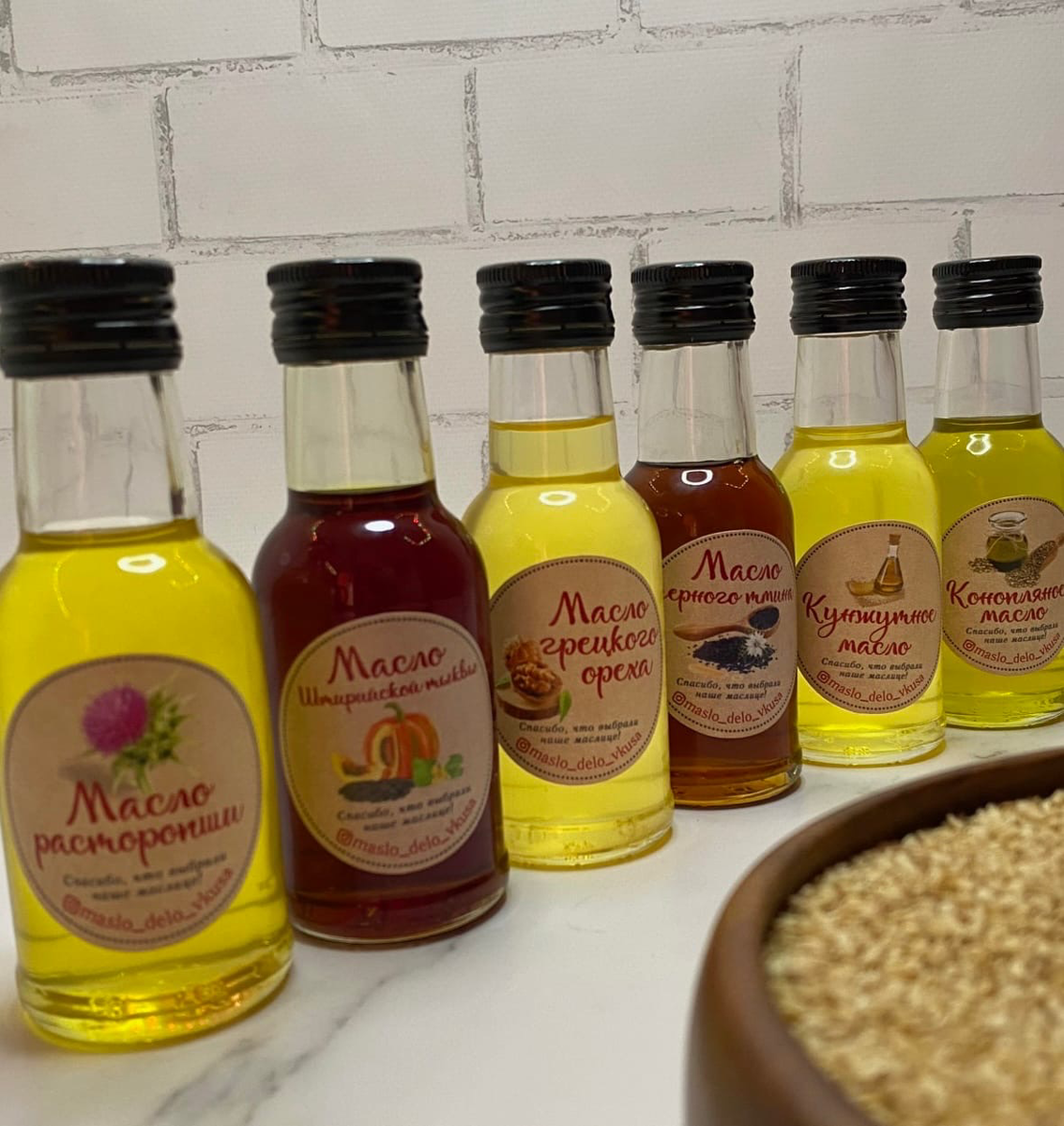Отжим производим под прессом в боченках, без нагревания и соприкосновения сырья с металлом, и без его измельчения, используем только цельные орехи и семяна. Именно при таком способе отжима в маслах сохраняется все польза и полезные вещества, подаренные самой природой♥️ ⠀ На сегодняшний день линейка нашей продукции состоит из 6 видов масел: ⠀ 1️⃣ Конопляное масло - идеальное соотношение Омега 3 и Омега 6 жирных кислот, витамины А, В, Е, F, K, C, калий, фосфор, магний. Повышает иммунитет, нормализует давление, улучшает метаболизм, восстанавливает нервную систему, благотворно влияет на работу дыхательной системы ⠀ 2️⃣Тыквенное масло - омега -3, омега - 6. Богато цинком, селеном, железом, витаминами А, Е, В. Укрепляет иммунитет, улучшает обменные процессы. Применяется при заболеваниях печени, желчного пузыря, сердца и сосудов. ⠀ 3️⃣Масло грецкого ореха. Омега 3,6,9.Витамины Е, А, В, Р, С, К, цинк, медь, железо, йод, кальций, фосфор, магний. Обладает противоспалительным действием, ускоряет