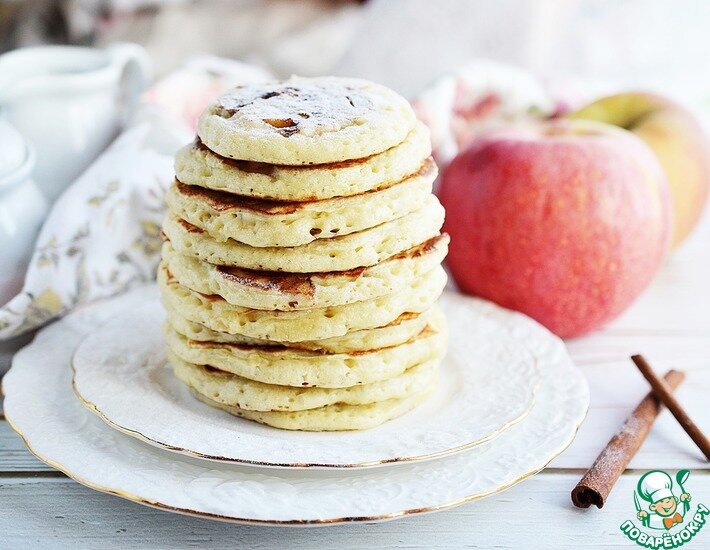 Очень ароматные дрожжевые оладушки. Нежное, в меру сладкое тесто с небольшими кусочками яблока и неповторимым ароматом корицы - просто пальчики оближешь! Особенно любимы такие оладушки детьми. Ингредиенты для «Оладьи с корицей и яблочным припеком»: Время приготовления: 120 минут Количество порций: 6 Рецепт «Оладьи с корицей и яблочным припеком»: Яйца взбить с сахаром и солью. Добавить молоко, взбить. Просейте в миску муку вместе с содой и дрожжами, перемешайте. Я в дрожжевой выпечке всегда использую сухие дрожжи. Тщательно перемешайте, накройте и поставьте в тёплое место на 1 час. Через час добавьте масло, перемешайте. Оставьте подходить ещё минут на 30. Яблоки нарежьте мелкими кубиками, добавьте ванильный сахар и корицу. Смазывайте сковороду маслом. Наливаете немного теста. Пока оладушек печётся с одной стороны, на вторую выкладывайте ложечку яблок. Переворачиваете и выпекаете с другой стороны. Подайте к столу горячими. Обсудить рецепт >>> Понравился рецепт? Ставьте лайк и присоединяй