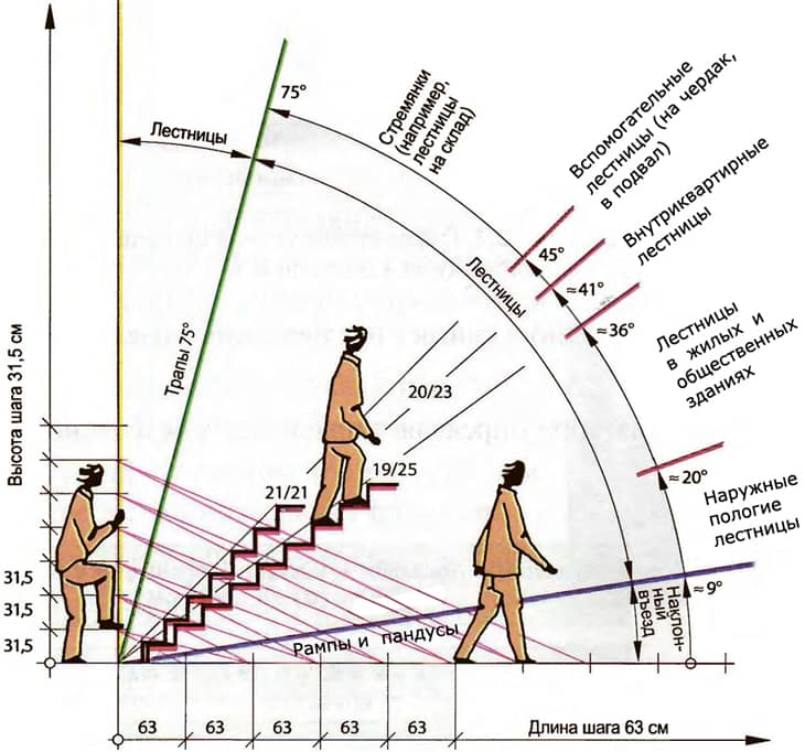 Здравствуйте! В этом посте мы поговорим о том, как построить идеальную лестницу в вашем доме. Чтобы было легче взять на вооружение, мы выделим 6 ошибок, которые чаще всего происходят при проектировании и монтаже лестницы. Исходя из этих ошибок вы сможете понять, какая лестница подходит вашему дому, а какая нет. Итак, давайте разберемся: где чаще всего ошибаются, выбирая неправильную лестницу для дома? Ошибка #1: Неправильный уклон лестницы Наиболее комфортный уклон лестницы - от 30° до 45°. Уклон свыше 45° - это уже неудобно. Да, лестница в 30° на самом деле может показаться пологой, но здесь важно учитывать то, что в доме помимо нас могут оказаться дети или пожилые люди. Для них именно уклон в 30 градусов будет самым комфортным. Правило золотого сечения лестницы: Чтобы получить лестницу с уклоном в 30°, если взять стандартную ширину ступени в 30 сантиметров, то высота должна составлять 20 сантиметров. Видите, на этой таблице рассчитан оптимальный угол наклона лестницы в зависимости от