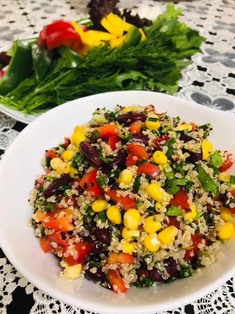 Мексиканский салат с киноа, фасолью и кукурузой