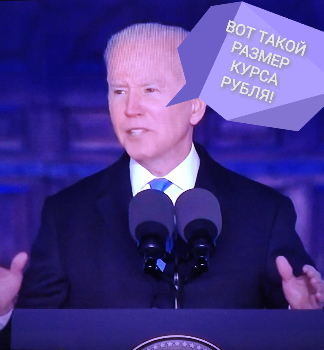 "Thank you, thank you, thank you" - начал свое выступление в Польше Президент США Джо Байден, обращаясь к восторженной польской публике. Ну, тут вопрос спорный, а точнее, как у нас говорят, - не за что. Старина Джо вообще забыл, что цель бизнеса это получение прибыли. Он думает, что цель его деятельности это причинение максимального ущерба мировой экономике. Во время спутанного потока сознания он с пафосом заявил, что доллар стоит уже двести рублей. Цифры неправильные, но хорошо, что он хоть какие-то цифры запомнил. В общем пока все идёт как в старом анекдоте про психов - Джо незаметно для санитаров пытается управлять миром.