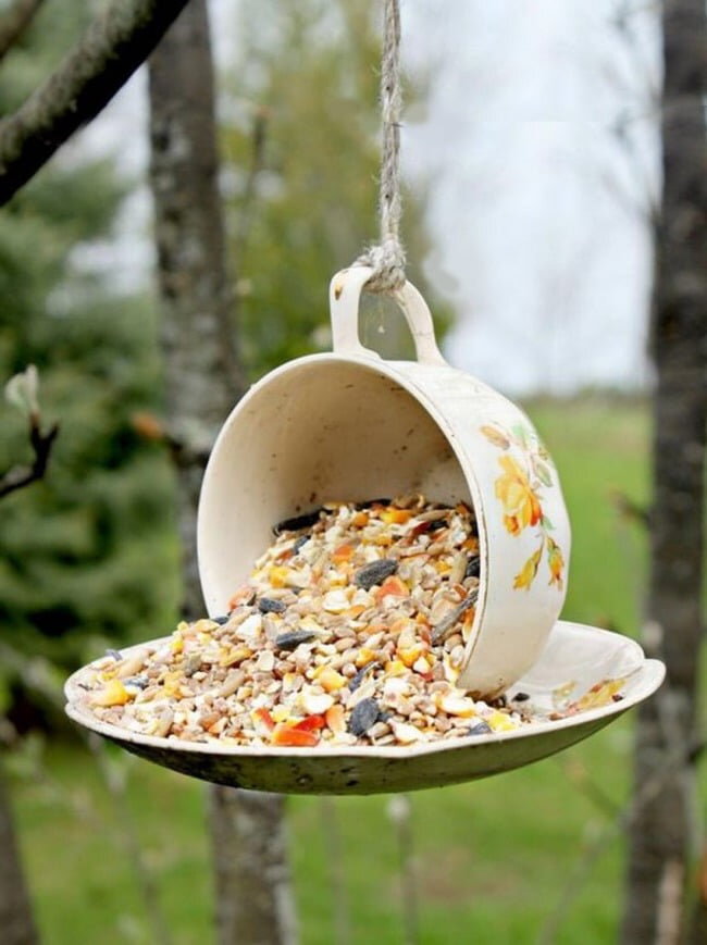 Оригинальные кормушки и скворечники для птиц Кормушка для птиц или скворечник станет дополнительным дизайнерским элементом садового ландшафта, если их изготовить в интересном и необычном Их делают из древесных спилов, картонных коробок, пластиковых емкостей, остаток досок и прочего подручного материала. Если проявить фантазию сплести домик для птиц можно даже из веток. Важно! Чтобы не устраивать среди пернатых конкуренцию, в саду можно сделать несколько таких замечательных кормушек. Как видите старая фарфоровая кружка и блюдце могут еще быть полезными Стильная кормушка из конструктора лего Иногда, для пернатых, близкое соседство с котом может быть абсолютно безопасным Оригинальна кормушка для птиц в виде доброго гномика Арка из скворечников — довольно необычное и креативное решение Если возможности ежедневно насыпать корм у вас нет, то кормушку лучше всего изготовить из пластиковой бутылки, применив при этом небольшую смекалку. В такой конструкции зернышки будут высыпаться по мере их у