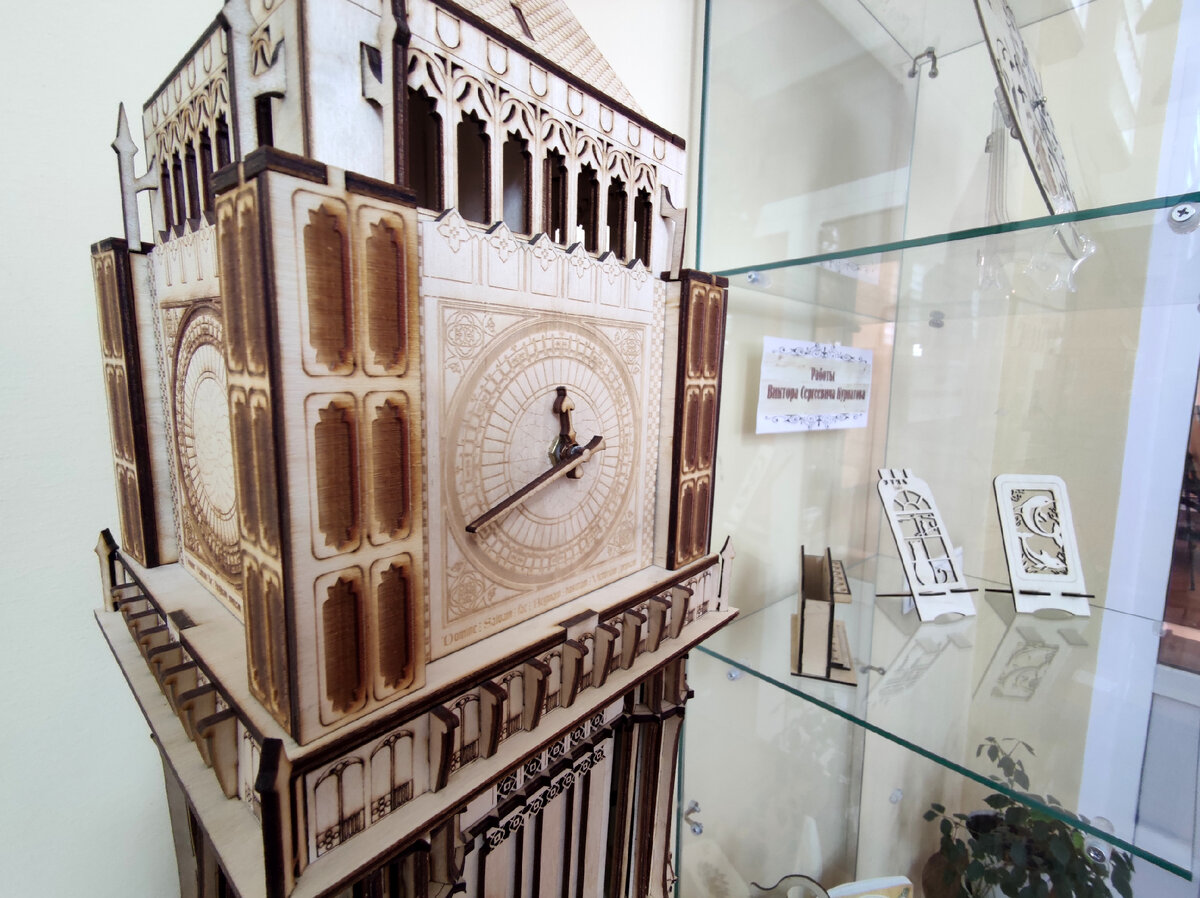 Резьба по дереву - это древнейшее ремесло, которое позволяет трансформировать самый незатейливый предмет в настоящее произведение искусства. Это в полной мере можно прочувствовать, посетив выставку деревянных изделий Виктора Курнатова в Государственной универсальной научной библиотеке и убедиться, что ручная обработка дерева не утратила своей популярности и смотрится неповторимо и самобытно. Здесь и удобные подставки для мобильного телефона, легкие и изысканные, с элементами живой природы: фигурками резвящихся дельфинов и спокойного уверенного кота, наблюдающего за птицами. Замечательно смотрится оригинальная настольная визитница. Эта практичная вещь будет хорошим дополнением рабочего стола делового человека. А часы из дерева могут стать достойным украшением и придать неповторимый вид любому интерьеру. Шкатулка ручной работы также всегда может стать удобным предметом на все времена и хранилищем каких-либо нужных вещей. Неброская, лаконичная, с цветочным орнаментом шкатулка радует глаз