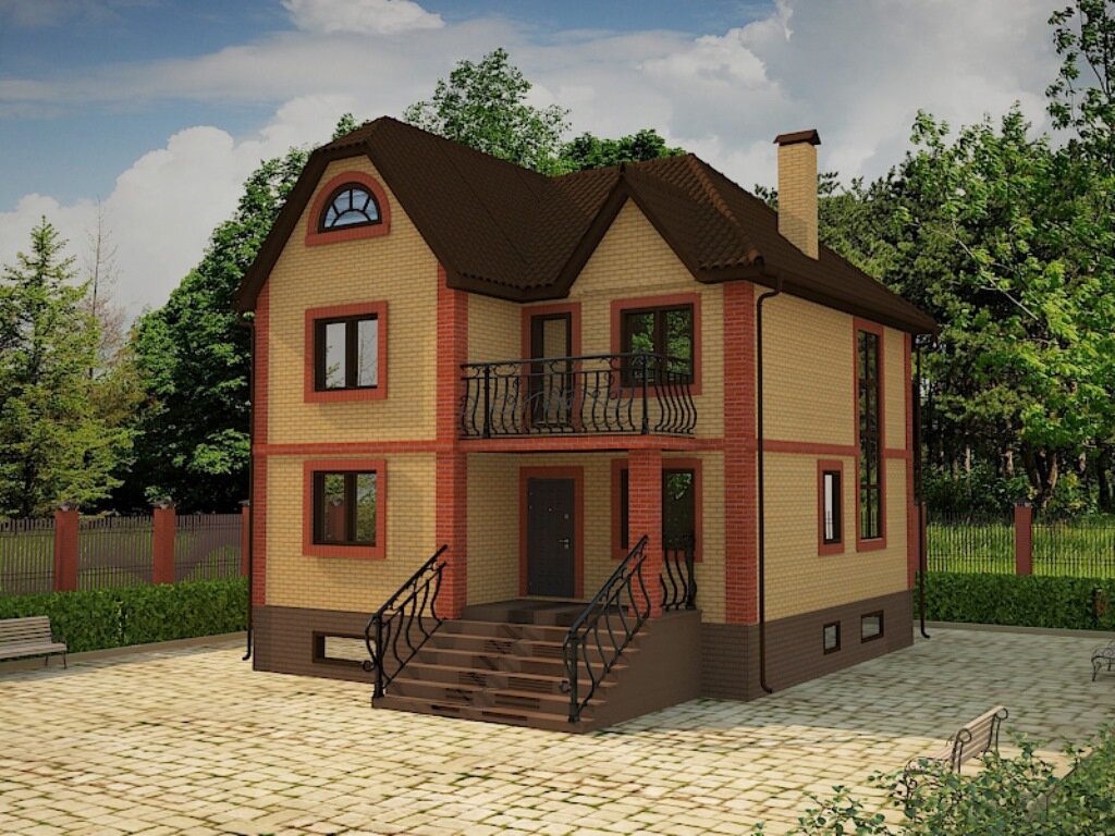 Наружная отделка – облицовочный кирпич. Строительство дома начинается с проекта. Только имея полный и подробный проект будущего дома можно быстро и грамотно построить его без ошибок, накладок и переделок. Проект поможет наиболее точно представить внешний вид дома, планировочные решения, расход требуемых материалов и конструктивные решения фундаментов, стен, перекрытий и крыши. Проект дома разработан специалистами в области проектирования и строительства загородных домов, коттеджей с учетом ГОСТ и СНиП. Проект состоит из разделов: АР (архитектурные решения), КР (конструктивные решения) и 3D-визуализации. Выполнен на бумажном альбоме формата А-3