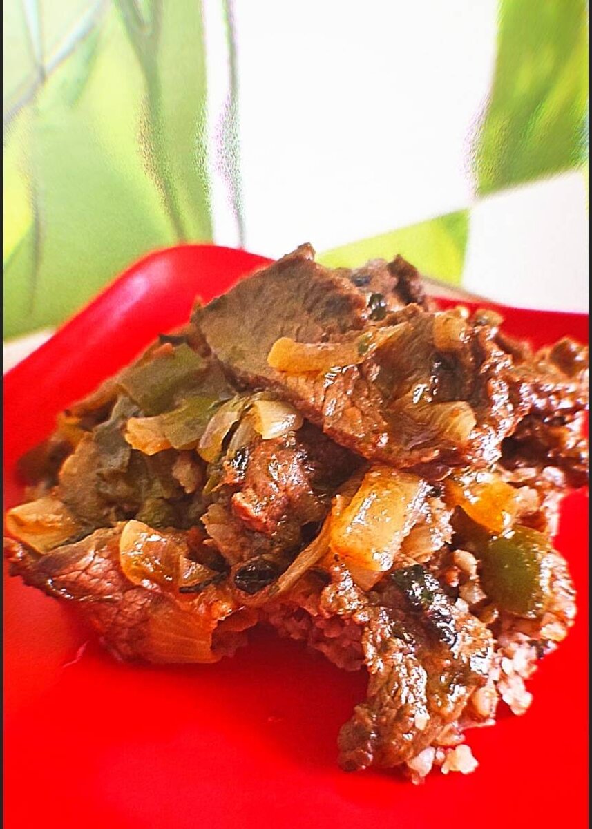 Нежное мясо говядины с ярким и насыщенным вкусом! #говядинаумами #умами #неднаяговядина Ингредиенты: мяса говядины, растительного масла, соуса "Терияки", мускатного ореха, сушёного чеснока, капель соуса "Табаско", соль, перец опционно, крупных луковицы, крупный болгарский перец, свежих помидора, воды, кинзы Способ приготовления: Мясо нарежьте небольшими кусочками поперек волокон. Добавьте к говядине все компоненты маринада: сушёный чеснок, мускатный орех, соль, перец, соусы "Терияки" и "Табаско". Оставьте мариноваться мясо на 30 минут. Нарубите лук полукольцами, болгарский перец средней соломкой. Помидоры очистите от кожицы и протрите. Отдельно обжарьте лук с болгарским перцем, выложите в миску. Поджарьте говядину до золотистой корочки. Влейте в мясо протёртые помидоры и воду. Тушите на среднем огне под крышкой 40`. Затем добавьте обжаренные лук с болгарским перцем. Посыпьте мелко рубленой кинзой. Приятного аппетита!