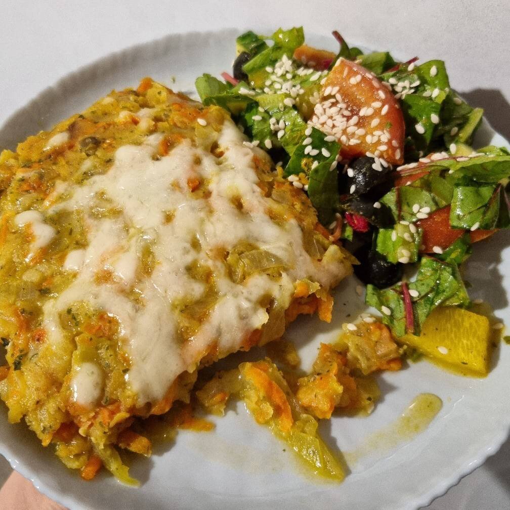 Очень уж мне полюбился этот рецепт, хочется поделиться, особенно вкусен на следующий день и в холодном виде. Хотя и горячий бесподобен. Ингредиенты: Филе пангасиуса , Лук, Морковь крупная, Капуста , Чечевица красная , Соль, Куркума, Перец красный молотый, Приправа для рыбы, Сыр. По желанию Способ приготовления: Чечевицу промываем, и отвариваем до состояния готовой каши. Если останется немного воды, не страшно, главное чтобы она полностью сварилась. Филе рыбы, порезать и замариновать, в соли и специях для рыбы. На сковородке на медленном огне, обжариваем лук, морковь, капусту нашинкованную, в уже протушенные овощи добавляем готовую чечевицу, солим перцем, добавляем куркуму и зелень., потушить пока не испариться влага. Выкладываем в форму слоями, чтобы рыбы была в середине. Посыпаем сверху сыром. Отправляем в духовку на 35-40 минут при температуре 180°. Приятного вам аппетита ❤