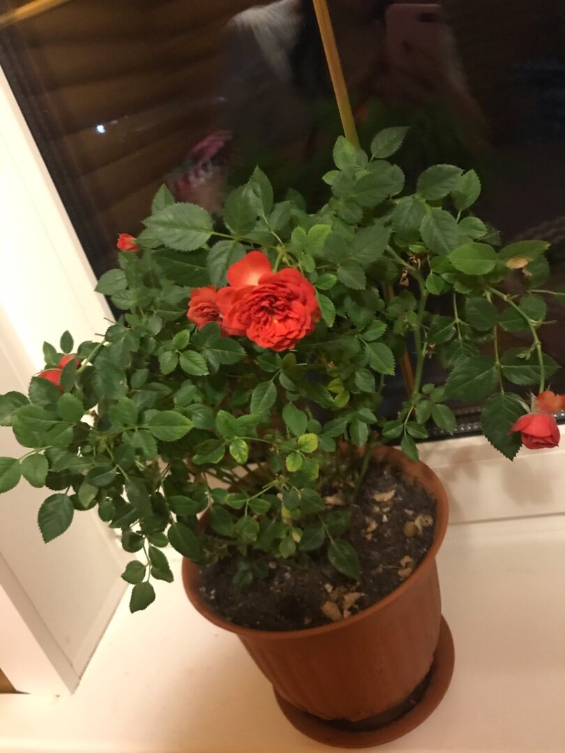 В горшок насыпала на дно керамзит мелкий, далее немного земли для роз, в одном горшке было три кустика, каждый кустик посадила в отдельный горшок, и все свободное пространство засыпала землей. Поместила на западный подоконник и обрезала бутоны. В итоге, у бедных кустиков сразу же завяли листья, но во многих статьях писали, что это норма. А после листочков засохли и сами кустики. А вот второй горшочек я так же поставила на карантин на 14 дней. После карантина я без всяких промываний, извлекла все кустики вместе из горшка и посадила в новый (на дно немного керамзита, все остальное свободное место, специальный грунт д