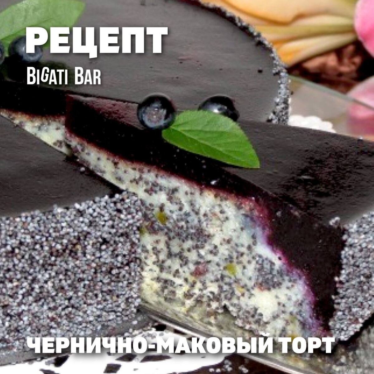 #рецепты Рецепт из Bigati Bar: чернично-маковый торт 🥧Состав для макового бисквита: 1. Сливочное масло - 200 гр 2. Сахар - 250 гр 3. Яйцо - 7 шт 4. Фисташки - 125 гр 5. Мак - 250 гр 🥧Состав для черничной заливки: 1. Черника замороженная - 300 гр 2. Сахар - 300 гр 3. Желатин - 30 гр 4. Вода - 150 мл 🥧Состав для украшения: 1. Мак - 50 гр 2. Несколько ягод свежей черники 🫐Приготовление: МАКОВЫЙ БИСКВИТ: 1. Жареные орехи измельчаем в блендере в муку, соединяем с маком и перемешиваем. 2.Сливочное масло и 1/4 порции сахара взбиваем миксером добела, 5–7 минут. Не прекращая взбивания, вводим желтки и маково-ореховую смесь. Взбиваем еще 1 минуту. 3. Отдельно взбиваем миксером белки, небольшими порциями вводим в них оставшийся сахар. Продолжаем взбивать в устойчивую пену 10 минут. Взбитые белки аккуратно вмешиваем в тесто. 4. Выкладываем тесто в застеленную пергаментной бумагой форму для выпечки в предварительно разогретую до 160 °С духовку. Выпекаем 60 -80 минут . 5. Готовый бисквит ох