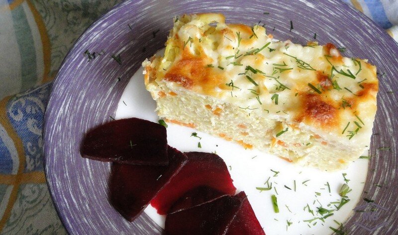 Настолько простое и вкусное блюдо, но многие даже не сразу поймут, что в его основе! Запеканка из капусты с фаршем и сыром станет прекрасным блюдом для основного приёма пищи домочадцев и, конечно, для приверженцев правильного питания. Ингредиенты: 500 гр свежей капусты, 300 гр куриного фарша, 1 головка лука, 1-2 морковки, 50 гр манной крупы, 50 гр твёрдого сыра, 100-150 гр сметаны или майонеза, 2-3 зубчика чеснока, соль и специи — по вкусу. Процесс приготовления: Кастрюлю с водой ставим на огонь и доводим до кипения. В это время мерло шинкуем капусту. В кипящую воду перекладываем капусту. Накрываем крышкой и снимаем с огня. Даём капусте запариться в течение 10 минут. После откидываем ее на дуршлаг, чтобы стекла лишняя вода. Очищенные лук и морковь натираем на крупной тёрке. Обжариваем их на сковороде с растительным маслом до готовности. Соединяем капусту, фарш, морковь с луком. Добавляем манку, половину сметаны. Солим и перчим массу, можно добавить ещё свои любимые специи, а