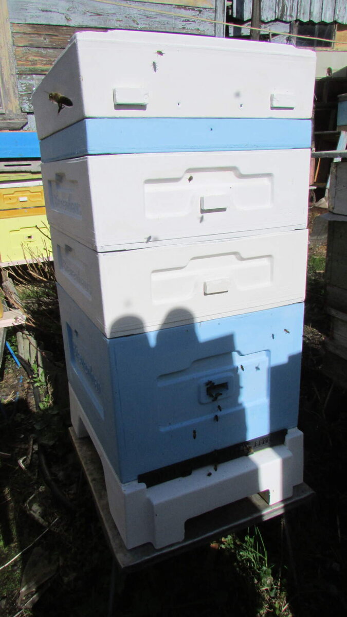 Предпочитаю десятирамочный улей с магазинными надставками