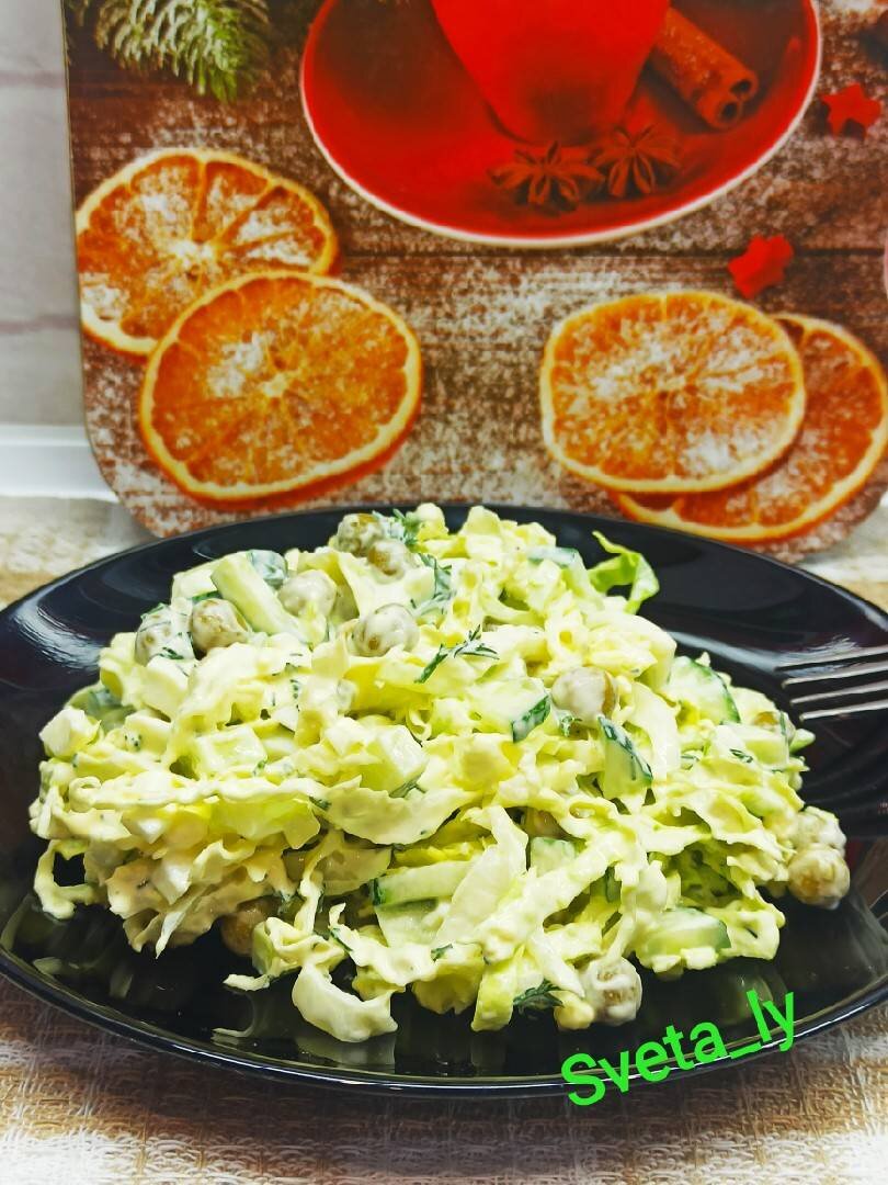 Салат из пекинской капусты с огурцом и зелёным горошком
