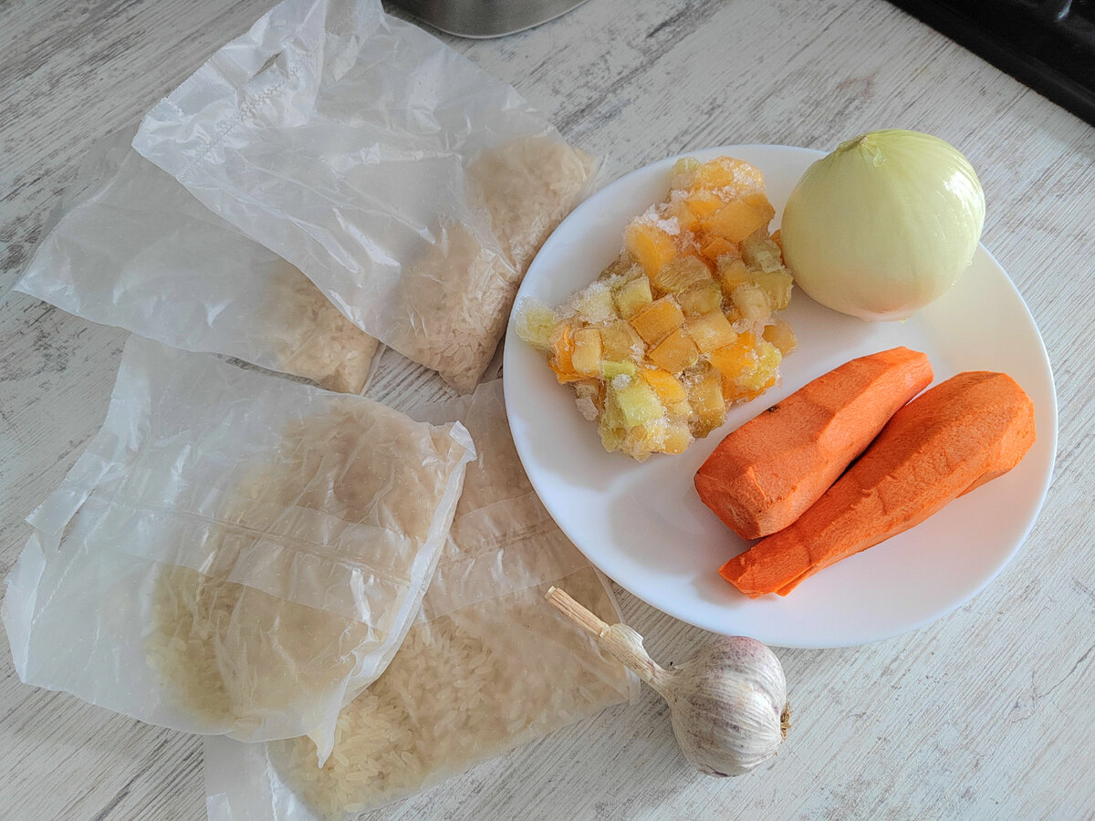 Откопала Дзен, твёрдо решила начать его регулярно вести)) А с чего начать? Считаю, что с еды. Совместное приготовление и употребление , определённо, сближает. И сегодня у меня на ужин сочный рис с овощами, курица и маринованные шампиньоны (впервые на арене) . Начнём по порядку. Рис с овощами Для его приготовления понадобится рис, лук, чеснок, морковка, кабачок (заморозила его летом, я тот ещё запасливый хомяк, вы ещё убедитесь 😉). Ясен пень, что ещё нужна соль, а также перец. Чеснок режем тонко и обжариваем на растительном масле. Отправляем в сковородку лук. Обжариваем пару минут на среднем огне. Не дожидаемся, пока чеснок обуглится, будет невкусно. Следующим идет кабачок. 3 минуты и можно добавлять морковь кубиками. 5-7 минут жарим. Добавляем соль, перец и держим на огне ещё пару минут. Надеюсь, перед тем, как приступить к овощам, вы поставили кастрюлю с рисом на плиту. Я варила рис в пакетиках. Когда рис готов, перемешиваем его с овощами. Готово, вы восхитительны, а рис - в