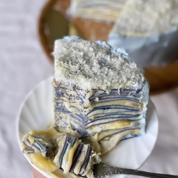 🎂 Блинный торт Матча-лайм-белый шоколад Супер-эффектный блинный торт без выпечки с двумя видами крема − лаймовый и заварной с белым шоколадом 🍰 Блинчики Мука пшеничная - 400гр. Молоко - 600мл Яйца - 4шт. Сахар - 6ст. ложек Растопленное сливочное масло - 6ст. ложек Соль - щепотка Вода - по необходимости Чай матча - 20гр. 1⃣ Соединить в чаше муку, матчу, сахар и соль. 2⃣ Молоко подогреть до тёплого состояния и влить в сухие ингредиенты по частям, тщательно перемеривая массу венчиком после каждой. Это поможет избежать комочков. 3⃣ Ввести в массу яйца по одному. Яйца должны быть комнатной температуры. 4⃣ Добавить растопленное, но не горячее сливочное масло. Тесто для блинчиков должно по консистенции напоминать жидкую сметану, если оно получилось очень густым, или первый блинчик получился толстеньким из-за того, что слишком медленно растекался по сковороде, нужно добавить воды комнатной температуры. Жарить блинчики лучше всего на антипригарной хорошо