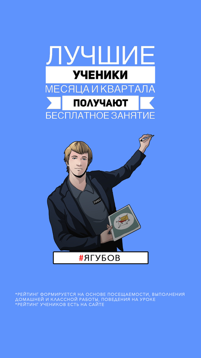 Первое занятие бесплатное. На нём выявляем пробелы, определяем уровень знаний. За приведённых знакомых даю скидку 10% за каждого. Планируете долго заниматься? Оплатите 3 месяца, 1 получите в подарок (прогулы не компенсируем). Хотите несколько лет заниматься? Отлично. З