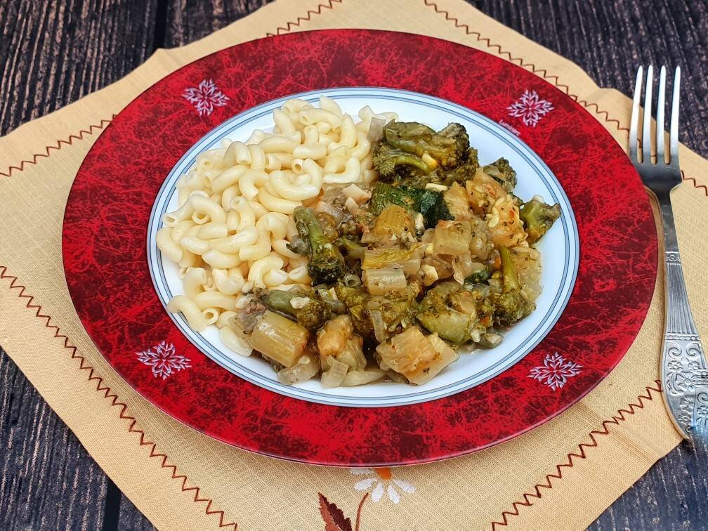 Очень простое и нежное блюдо из кабачка, брокколи и сельдерея. Подойдет для людей, имеющих проблемы с ЖКТ и для аллергиков, не переносящих продукты красного цвета. #пост #веган #сельдерей #брокколи #кабачки Ингредиенты: луковица, чеснока, стеблей сельдерея, замороженной брокколи, замороженных кабачков, овощного или грибного бульона, крахмала, соуса песто по желанию, соль и перец Способ приготовления: 🔰Лук порезать кубиками. Чеснок мелко порезать. 🔰Обжарить лук и чеснок на растительном масле до мягкости. 🔰Стебли сельдерея почистить от прожилок и порезать поперёк на кусочки 1,5-2 см. 🔰Добавить к луку и слегка обжарить. Лук за это время станет золотистым. 🔰Добавить замороженные кабачки и брокколи. 🔰Чтобы лук не горел, надо добавить немного бульона (30 мл). 🔰Когда замороженные овощи размягчатся, надо добавить соус песто, соль и перец. Так как овощи не имеют яркого вкуса, можно добавить и другие специи по желанию. 🔰Когда кабачки и брокколи будут готовы, надо развести в 100 мл бульон