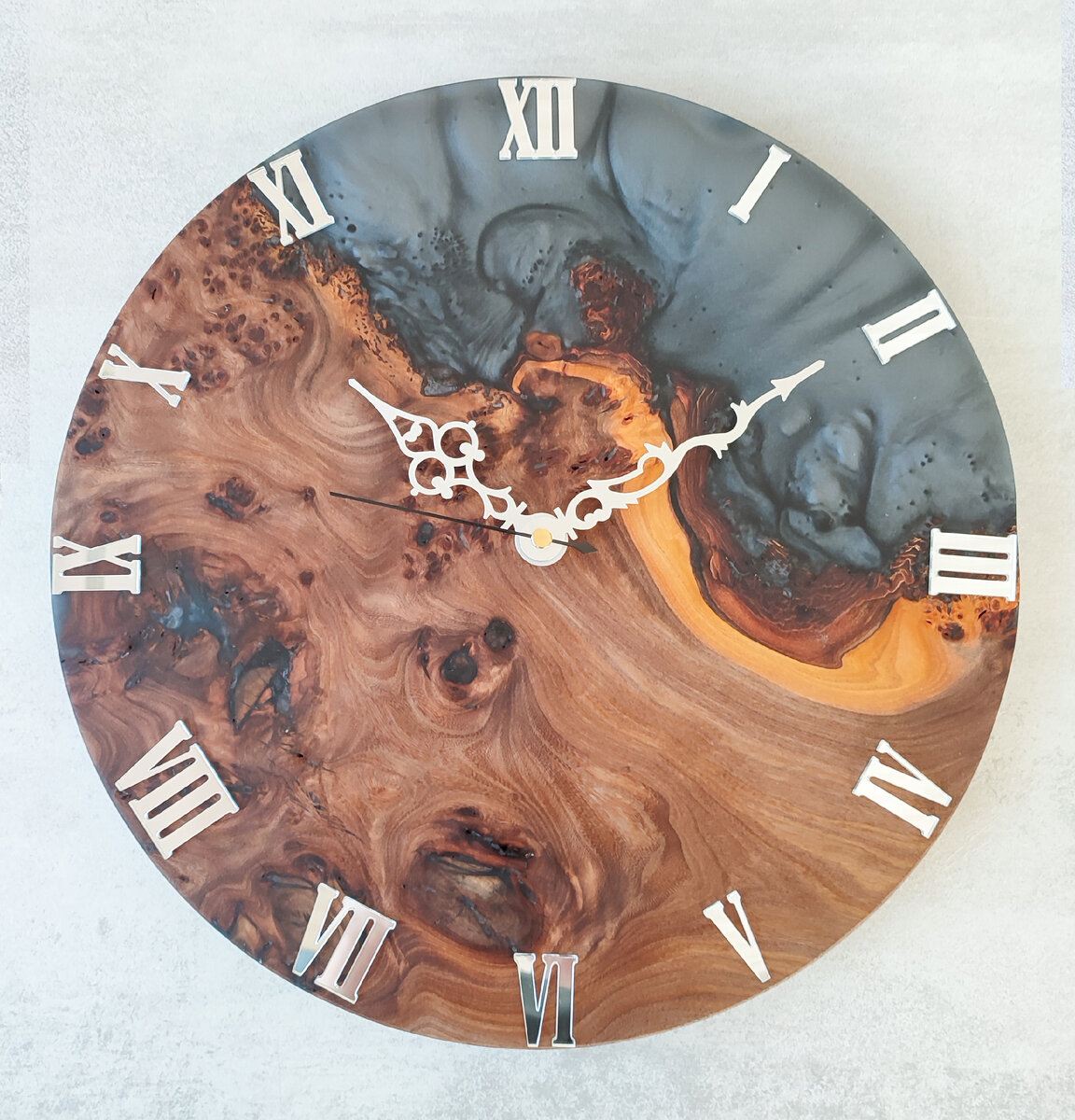 Увидев такие часы не только невольно залюбуешься, но и обязательно захочешь прикоснуться, ощутить тепло дерева, его гладкую выполированную поверхность. Заодно пройтись рукой по смоле и ощутить поверхность на подобии скин-тач.