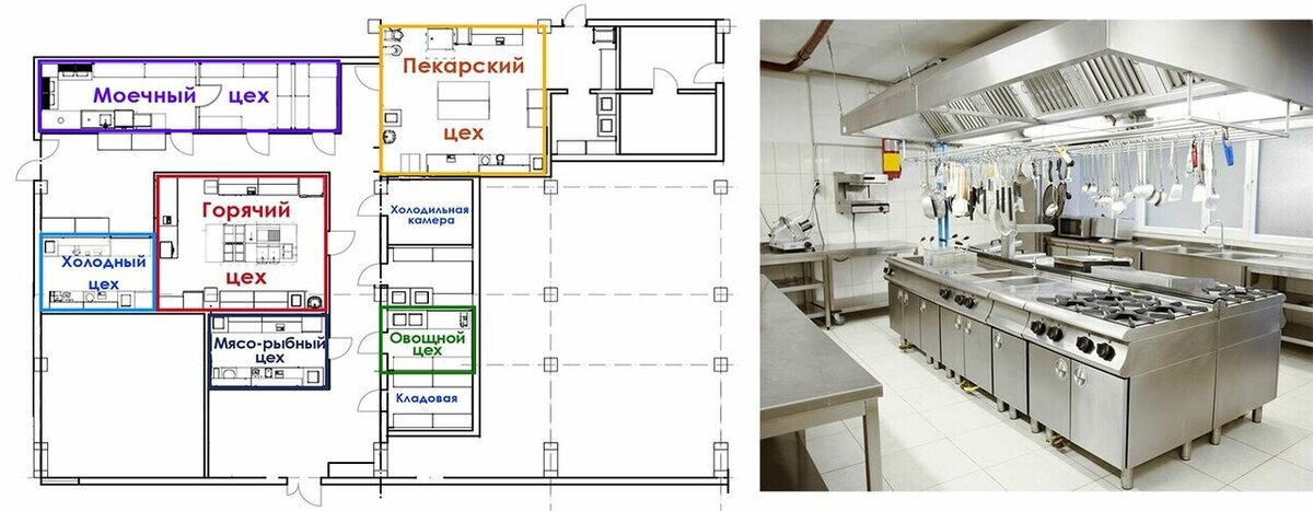 в ресторане «N» в меню будут первые, вторые блюда, салаты и пицца, алкогольные и безалкогольные напитки. По действующим нормам необходимы будут следующие цеха: 🔹Раздача (оформление и отпуск блюд) 🔹Горячий цех (первые, вторые блюда, горячие закуски) 🔹Холодный цех (салаты и холодные закуски) 🔹Пицца-цех (приготовление пиццы) 🔹Цех просеивания муки (просеивание муки для приготовления пиццы) 🔹Моечная кухонной посуды (мытьё посуды и инвентаря кухни) 🔹Мое