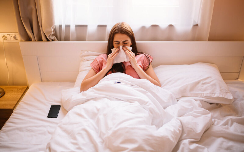 В подавляющем большинстве случаев возбудителями острых респираторных заболеваний выступают вирусы. Основной путь заражения – воздушно-капельный, т.е. подхватить ОРЗ легче легкого в компании уже болеющего человека, который постоянно кашляет или чихает. Болезнь может протекать менее или более тяжело: от банальной простуды до гриппа и даже пневмонии. Тем не менее ОРЗ обычно имеют одни и те же основные характеристики.Помимо насморка, затрудненного носового дыхания, чихания и кашля простудные заболевания могут включать такие симптомы, как головная боль и боль в горле, повышение температуры, ломота в суставах. Как правило, средняя продолжительность ОРЗ колеблется в пределах 7–10 дней. Если по истечении этого времени симптомы сохраняются, вполне вероятно, что вирусная инфекция способствовала развитию осложнений в виде синусита, бронхита или пневмонии. В этом случае лечащий врач назначит другую схему лечения. В отличие от простуды аллергия – это реакция организма на воздействие не вирусов, но определенных веществ, называемых аллергенами. Реагируя на них, иммунная система выделяет химические вещества (гистамины), которые вызывают симптомы аллергии. Наиболее распространенным видом аллергии является сезонный аллергический риноконъюктивит (поллиноз) – реакция организма на пыльцу цветущих растений. Простуда и аллергия имеют некоторые общие симптомы: чихание; кашель; насморк; заложенность носа; слезотечение; першение в горле.