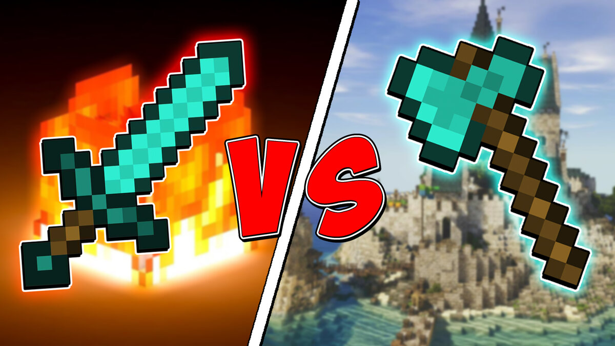 Внимание! Сравнение идёт с версии 1.9 до 1.16. Поэтому толк в сравнении есть! Всем привет! Давайте же выясним, что лучше: меч или топор. Мы рассмотрим достоинства и недостатки оружий в разных ситуациях. По ним вы должны выбрать сами, что для вас лучше. Поэтому рекомендую читать статью внимательно, иначе можно упустить что-то важное. Приятного просмотра! Рассмотрим самый важный показатель у этих оружий - характеристики. Алмазный меч наносит 7 единиц обычного урона и 10 единиц критического урона. Скорость атаки равна 1.6. Алмазный топор наносит 9 единиц обычного урона и 13 единиц критического урона. Скорость атаки равна 1.0. Если рассуждать этот показатель математически, то за определённый период времени меч сможет нанести больше урона, чем топор. Однако давайте не будем делать поспешные выводы, ведь практика зачастую даёт более верные результаты, чем расчёты. Когда могут произойти сражения: Сражаемся мы чаще всего на серверах по выживанию или по мини играм, ведь для битвы с мобами можн