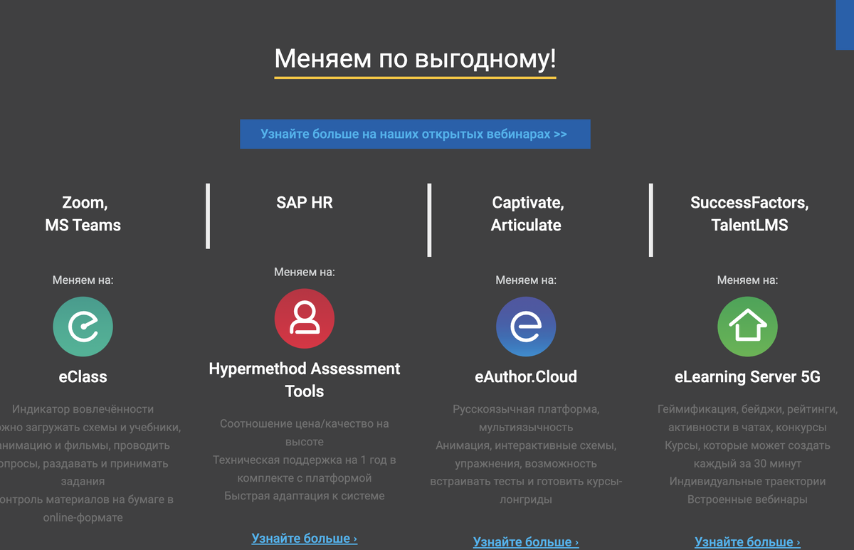 Только что с вебинара Гильдии EdMarket с Дмитрием Кречманом. Предлагала и предлагаю решение горячо любимой питерской компании Hypermethod eClass. Тезисно)