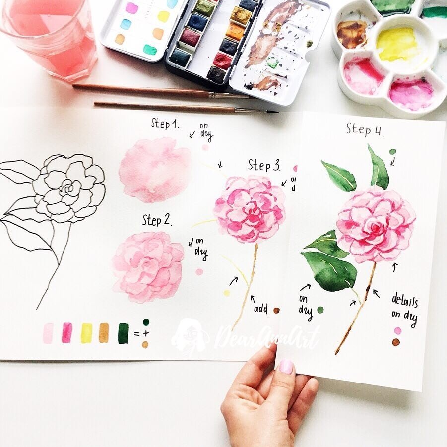 Привет! Сегодня порисуем акварелью. Пошаговый фото-урок роза с пояснениями от меня Полякова Настасьи. Урок подойдет для новичков и