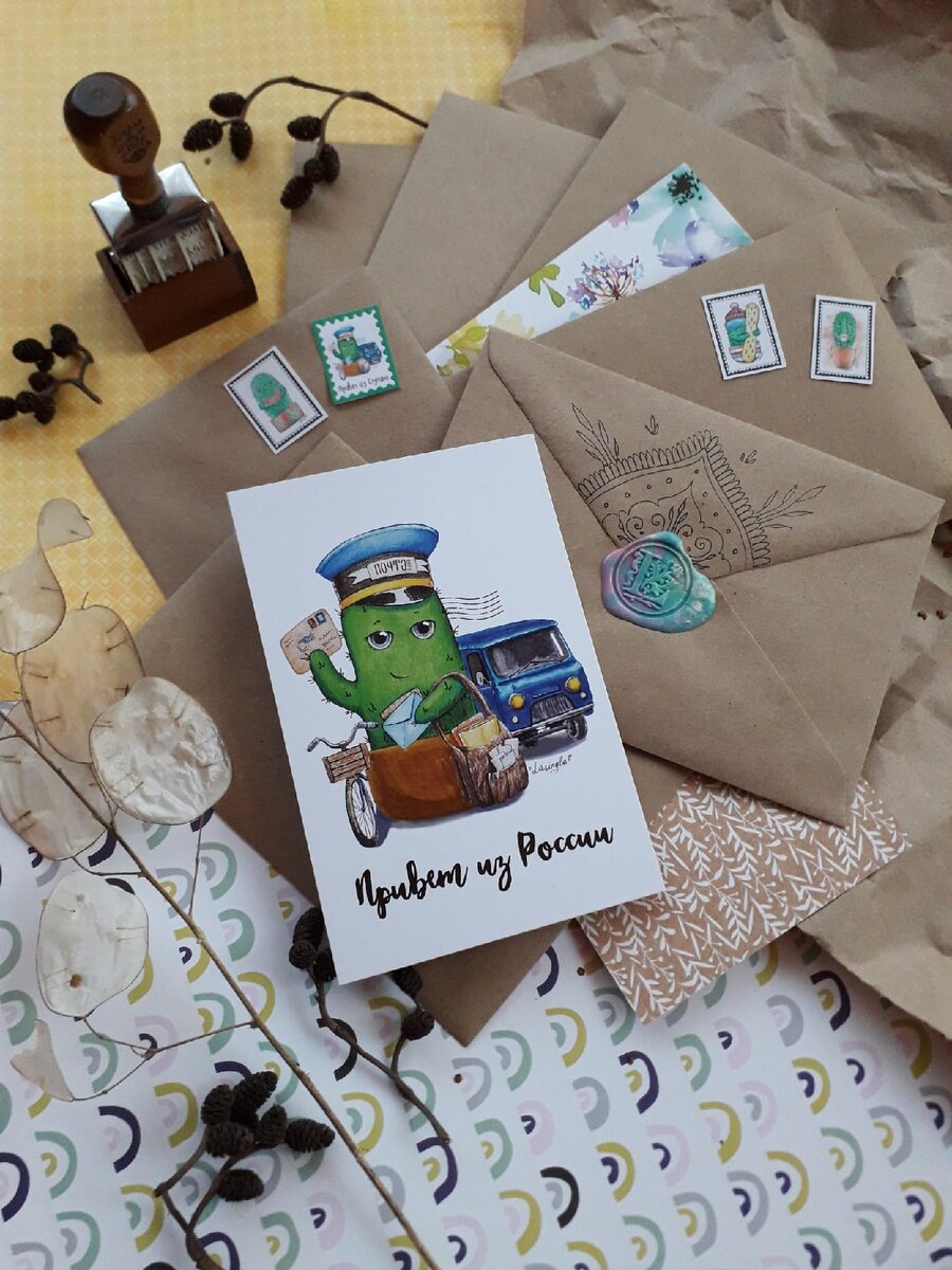 Для меня, как человека, который создает серию своих почтовых открыток с кактусами и не только это еще и визитка. На обороте открытки указаны мои контакты. Бывало я дарила свои открытки не знакомым людям на улице, на почте, в магазине. Открытка имеет и другие функции - это обмен э