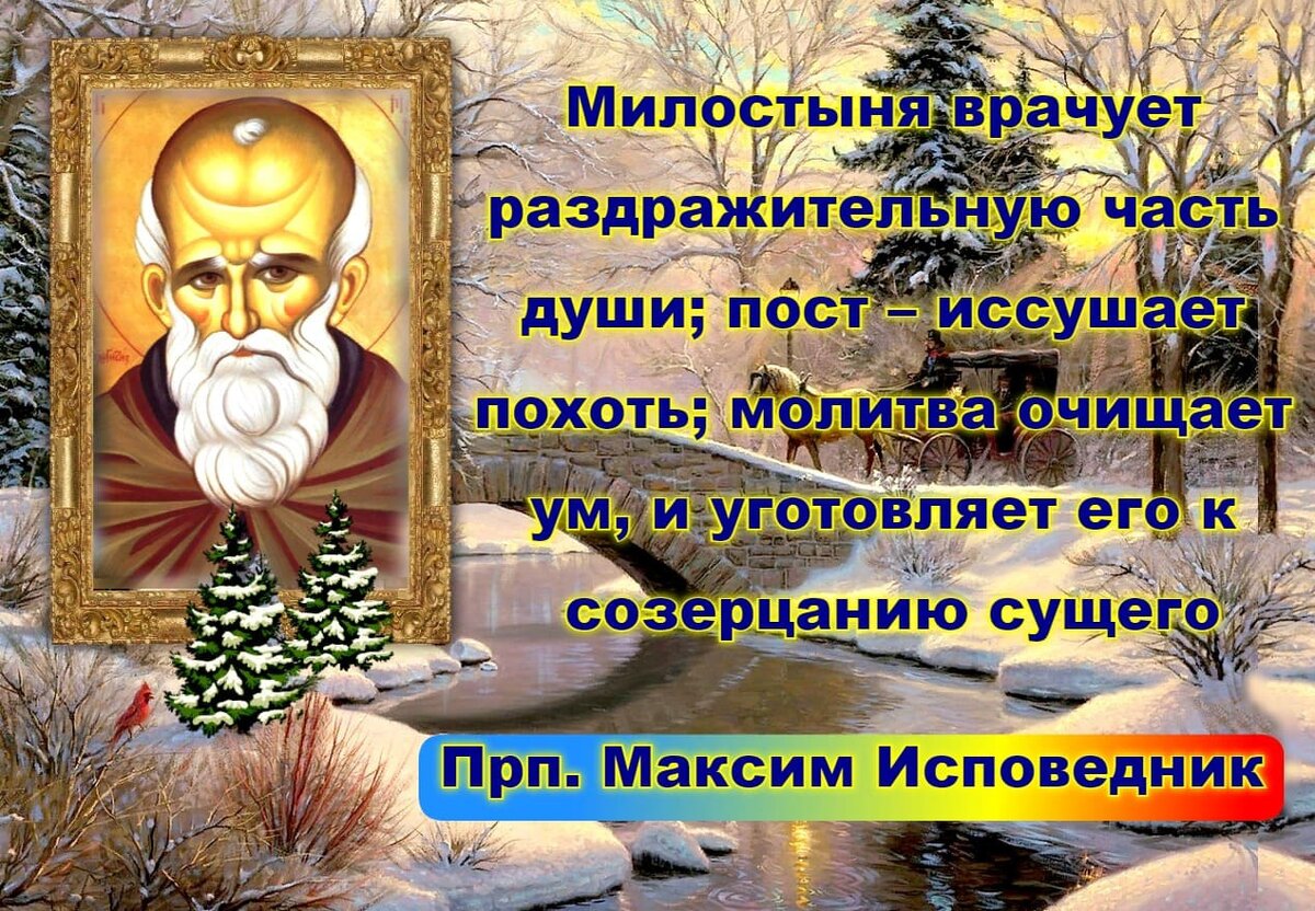 - «Милостыня врачует раздражительную часть души; пост – иссушает похоть; молитва очищает ум, и уготовляет его к созерцанию сущего» [2].