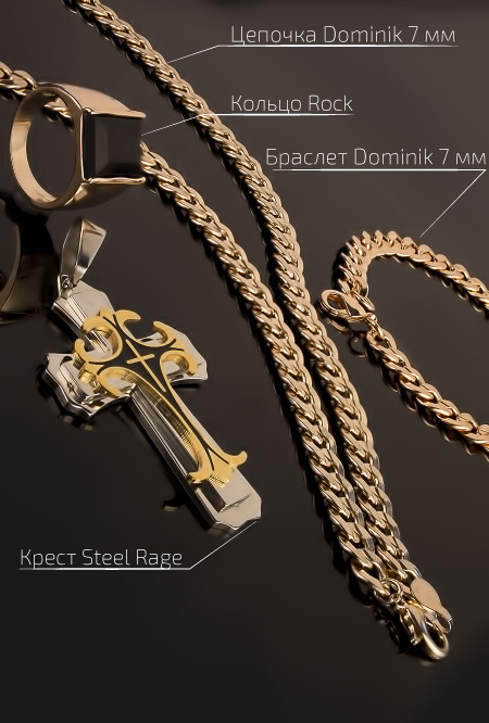 Брутальный комплект Dominik Что представляет из себя эксклюзивный дизайн комплекта Dominik? Для этой линейки моделей характерен строгий и необычный дизайн с ярким акцентом на брутальность. Ничего лишнего. Характеристики креста: