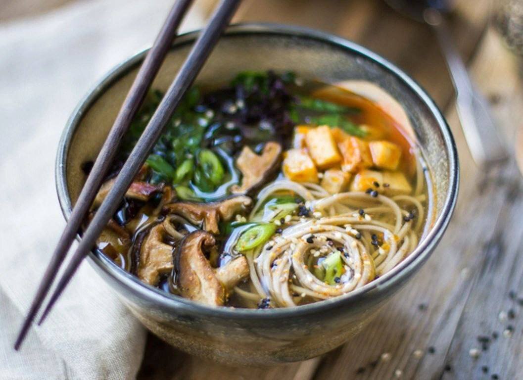 📖 Ингредиенты: - Гречневая лапша (соба) – 150 г. - Репчатый лук – 1 шт. - Морковь – 1 шт. - Капуста белокочанная – 200 г. - Сладкий перец – 1 шт. - Белые сушеные грибы – 50 г. - Шампиньоны – 100 г. - Соевый соус – 4 ст.л. - Соус сладкий чили – 3 ст. л. - Кунжутное масло – 5 ст.л. - Чеснок – 3 зубчика - Имбирь – 20 г. - Лайм – 1 шт. - Кинза, сахар, соль 🧑🏻🍳 Приготовление: 1. Сухие грибы залить кипятком и оставить на час. Отвар процедить. Грибы мелко нарезать. 2. Шампиньоны нарезать ломтиками. Чеснок, имбирь, кинзу мелко порубить. 3. Овощи нарезать соломкой. Выжить сок из лайма. Лапшу сварить до готовности. 4. В кастрюле разогреть кунжутное масло. Обжарить чеснок и имбирь, добавить лук и морковь. Добавить остальные овощи и грибы. Обжарить 5 минут. 5. Залить грибным отваром и дать закипеть. Добавить соусы, соль и сахар. Варить 15 минут. В конце положить кинзу и сок лайма. #рецепты #еда #рецепт супа #суп #обед