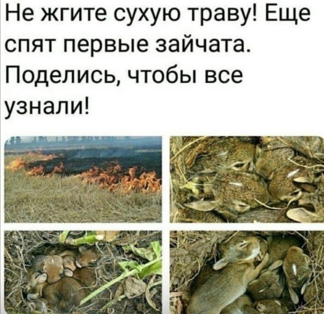 Уже третий год по интернету ходит красивая картинка с маленькими дикими крольчатами. Да, хоть зайцами они и не являются, но поднимают очень важную тему - весеннего пала травы.