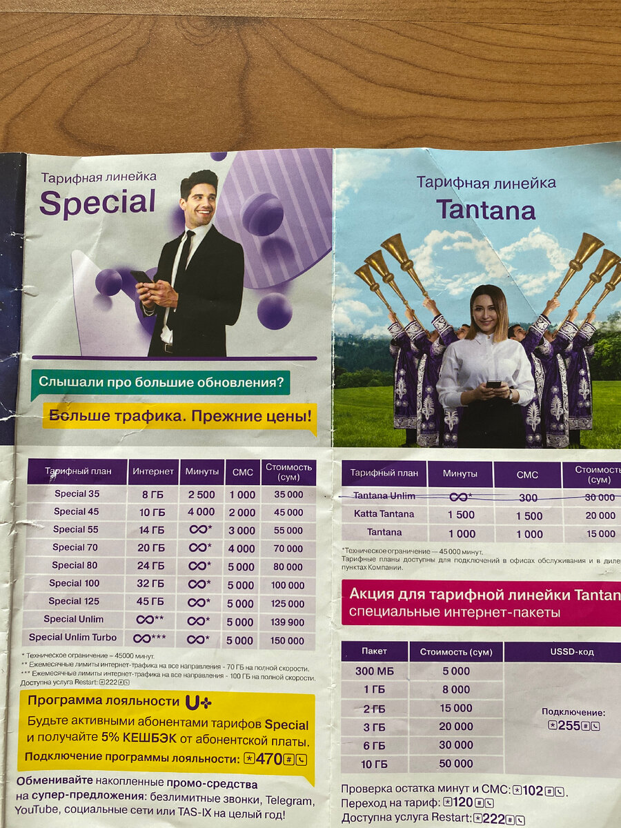 Мы прилетели сюда на длительное время. Связь нужна везде, поэтому сразу покупаем здесь местную симкарту. Свою российскую симку вставляем в запасной телефон, если ваш не двухсимочный. Сразу отключаем там мобильный интернет и меняем тариф на «платим за минуты разговора», то есть никакой абонентской платы у вас не будет. https://avatars.mds.yandex.net/get-zen_doc/1931555/pub_62319a79b2cfcc3682e72e91_62319e46e6c01f3d880b4966/scale_720 На местной выбираем удобный для вас тариф. Уточняем, где и как пополнять баланс, есть ли приложение, что бы отслеживать трафик. У меня UCell 15 Гб за 55 тыс сумм в месяц. Узнать трафик - *103 Дальше, нужно зарегистрировать местный номер, иначе через месяц его отключат. Для этого идём в главпочтамт. (улица Шахрисабз, 7 ) Там заполняемся анкету с данными своего мобильного устройства В окошко 13 (смотрим, где написано imai registrasiya) платим 3000 сумм, в соседнем окне платим ещё 53000 сумм и все 🙌