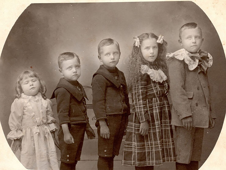 На самом деле, нам не известна предыстория конкретно этой фотографии и других фото в галерее. Известно лишь, что эти фотографии сняты в жанре Post-mortem - и люди, которые запечатлены на них, были мертвы в момент съемки. Например, самая младшая девочка на первом фото - мертва. Ее тело удерживается с помощью специального штатива. Остальные дети на фото, вероятнее всего, ее братья и сестры. Сегодня эти фотографии пугают нас, но в XIX веке с изобретением дагеротипа люди смогли, наконец, позволить себе сохранять портреты своих близких на память, ведь услуги живописца стоили дорого, и заказать портрет могли немногие. В то же время детская смертность была довольно высокой, и посмертная фотография зачастую была единственной возможностью сохранить память о ребенке. При жизни ребенка было весьма затруднительно это сделать из-за длинной выдержки дагеротипов. Впрочем, фотографировали не только детей, портреты покойников вообще были очень популярны. Как правило, усопшего снимали в кругу семьи, придавали телу сидячую позу, порой размещали в руках какие-то предметы. Для большего сходства с живым человеком фотографы иногда рисовали на снимке открытые глаза поверх сомкнутых век и наносили немного розовой краски на щеки.