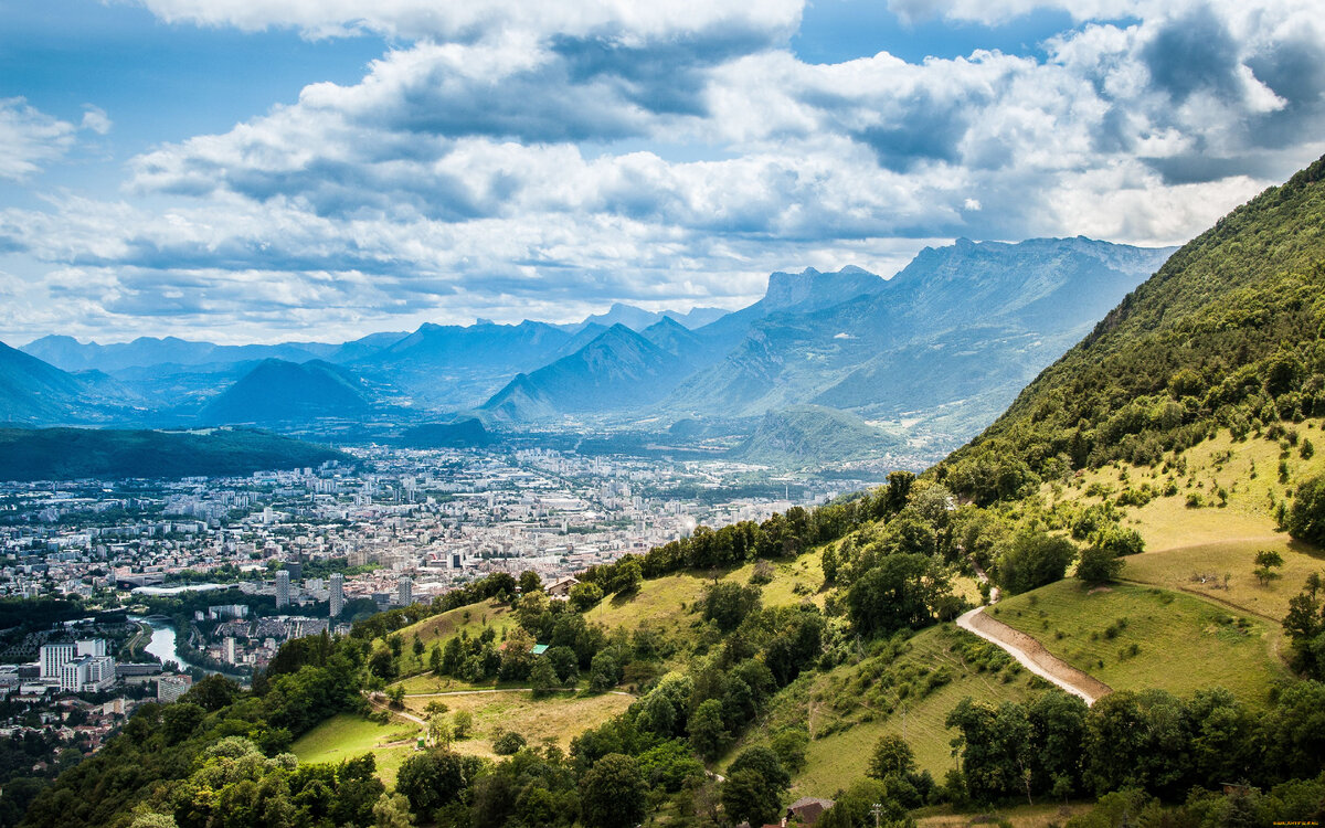 Голубое небо с небольшими вкраплениями белых облаков, зеленые горы на горизонте и небольшой городишко без высоток и ярких неоновых вывесок.