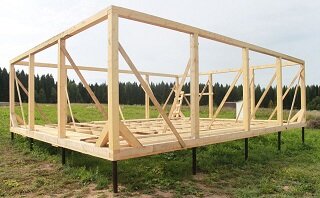 - Опоры каркасного дома обрезают для того чтобы их вершины находились в одной плоскости.