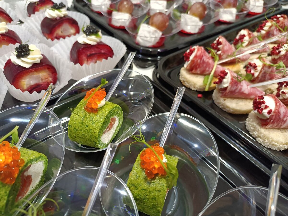 Здесь может быть представлены самые разнообразные варианты канапе. Каждое может выглядеть настолько оригинально и непредсказуемо. Вкусовые качества также поразят любого гурмана.