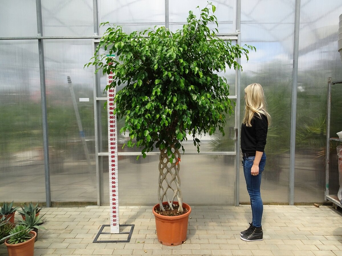 Большие растения требуют особых условий содержания в доме, в данной статье мы взяли 5 наиболее популярных и постарались написать про них основную информацию. Фикус Бенджамин Очень красивое растение, похожее на маленькое деревцо. Имеет выраженный толстый ствол, покрытый древесной корой, и пышную крону из сочных зелёных листьев. Данный цветок не требует слишком сложного ухода и быстро вырастает в условиях квартиры. Рекомендуется поставить растение в просторное светлое место для того, чтобы возле фикуса постоянно циркулировал воздух (однако не допускайте наличия сквозняков). Комфортная для растения температура составляет 17-25 градусов по Цельсию. Первое время цветок нужно поливать обильно и регулярно, однако, после того как фикус наберет силу, интенсивность полива можно сократить. В холодные времена года взрослый фикус достаточно поливать 1-2 раза в неделю, а весной и летом стоит проводить периодическую подкормку. Драцена душистая Любимица многих семей, Драцена давно стала одним из самых