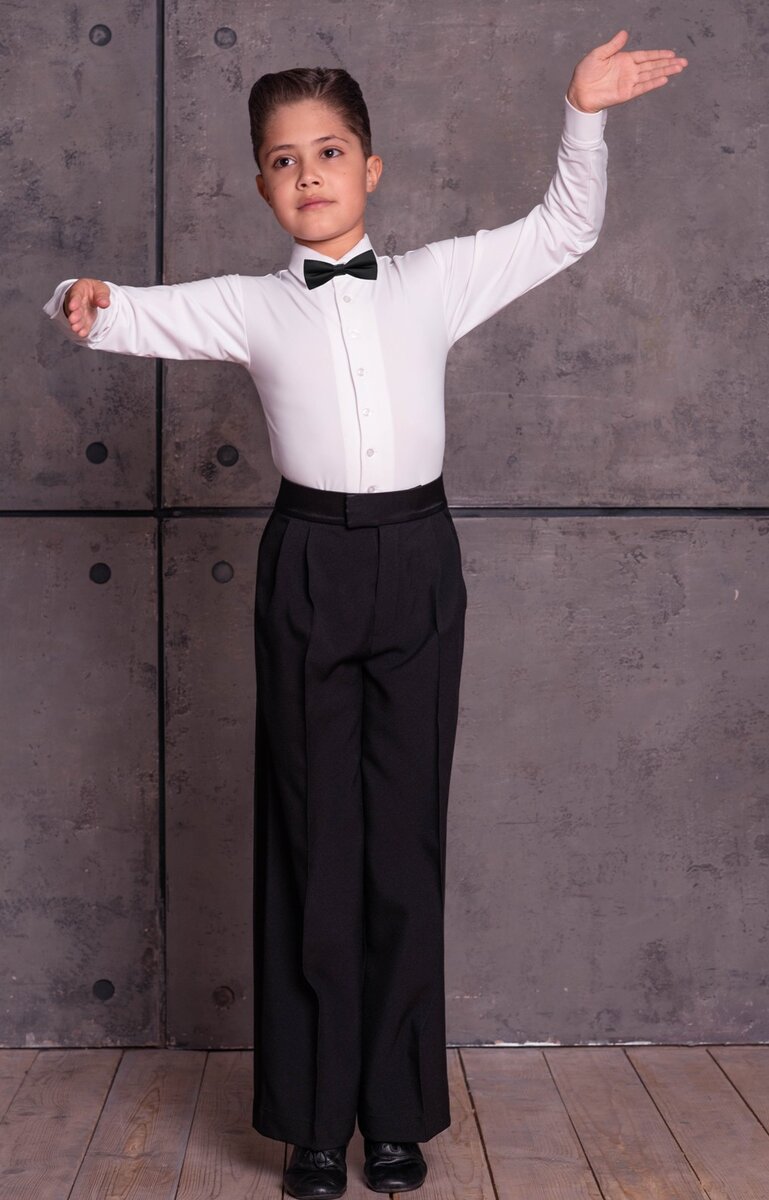 В спортивных бальных танцах, как известно, правила по костюмам очень и очень строгие. Любое отклонение от них может привести к дисквалификации. Поэтому крайне важно, чтобы одежда танцоров-спортсменов, даже самых юных, полностью соответствовала требованиям правил. Для мальчиков возрастных категорий Дети-1 и Дети-2 разрешённым видом одежды являются простая белая рубашка и чёрные брюки. Но они должны быть специальными — нельзя надеть школьную рубашку и любимые брючки. Рубашка должна быть эластичной и сшита по принципу боди, т.к. во время танца она не должна выбиваться из-под брюк. Эти нюансы приводят к особенностям кроя, а выбор материала, не свойственного для пошива рубашек» для жизни» — к нюансам пошива и обработки отдельных узлов, т.к. лайкра\бифлекс как материал намного толще привычных нам рубашечных тканей. О том, как решить эти сложные моменты, я подробно рассказываю и максимально подробно показываю в онлайн-курсе «Как сшить рейтинговую рубашку для мальчика» Авторска