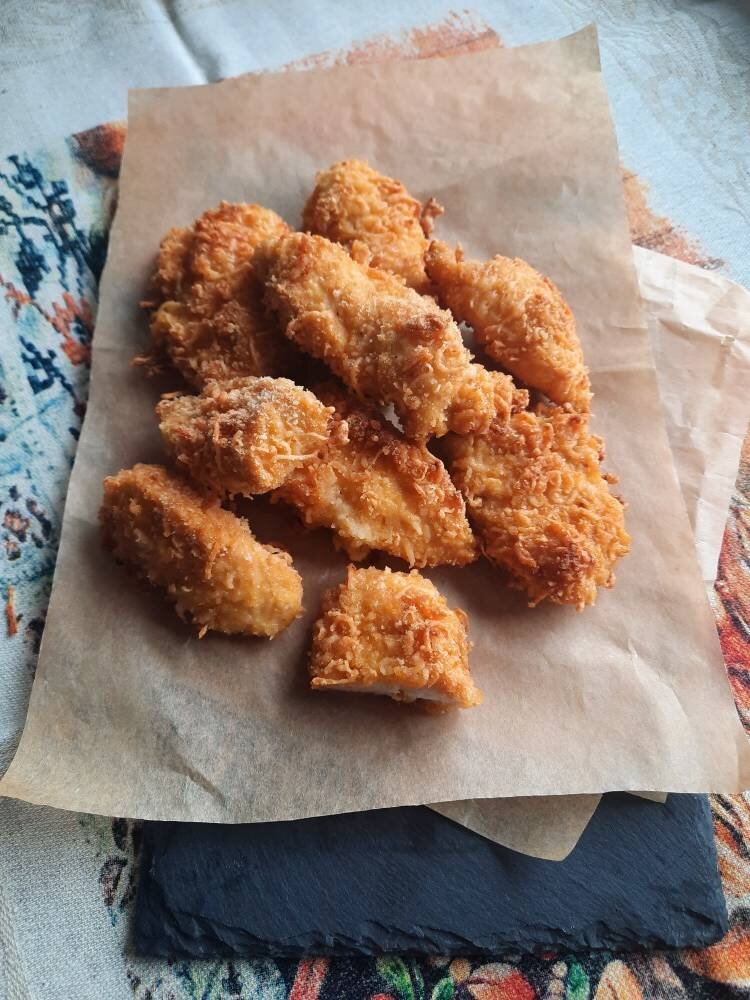 #стрипсы #стрипсывдуховке #курицавсыре #сырныйкляр #наггетсы #нагетсывдуховке #нагетсывсырномкляре Ингредиенты: Куриное филе , Сыр твёрдый, Панировочные сухари, Яйца , Соль , Копчёная паприка и специи для курицы, Чеснок сушёный Способ приготовления: Филе курицы нарезать на полосочки средней толщины, но чем тоньше тем вкуснее и хрустящее будет, солим, добавляем приправу для курицы и копчёную паприку по вкусу (у меня примерно по 1 ч л). Все хорошо перемешать и оставить на 30 минут, пока делаем кляр, яйца взбиваем и добавляем сушеный чеснок, сыр натереть на мелкой тёрке и смешать его с сухарями. Запекать будем в духовке на пергаменте силиконизированном это важно, чтобы ничего не прилипло и не сгорело, у меня получается на 2 противня от духовки, запекала 2 раза. Каждый кусочек обмануть в яйцо, затем в сыр с сухарями, можно и 2 раза, но смотрите чтобы хватило кляра, выкладываем на пергамент на расстоянии друг от друга, отправляем уже в разогретую духовку, запекаем при температуре 180 🌡35-4