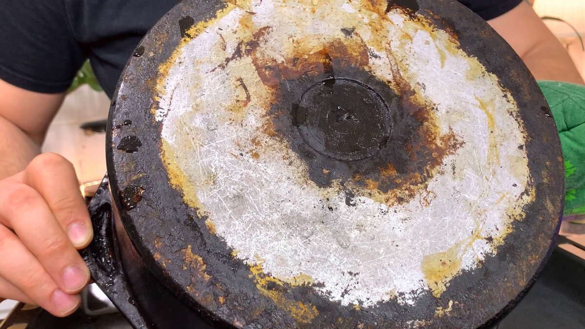 "Уксус и таблетка от посудомойки" проверили интересный совет на старом казане с огромным слоем нагара и жира. Делюсь результатом