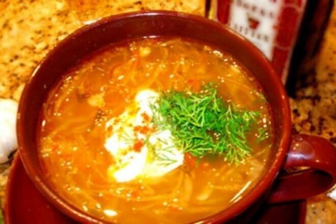 «Уральские» щи с курицей 🍲 Ингредиенты: 600 г капусты 500 г курицы 400 г картофеля 200 г репчатого лука 3 ст.л. пшеничной крупы (овсяной / перловой крупы/риса) 2 моркови сметана зелень перец черный молотый соль Приготовление: ШАГ 1 Крупу перебрать, промыть, несколько раз поменяв воду, замочить. ШАГ 2 Холодной водой залить курицу, добавить морковь и лук, нарезанные дольками, закипятить, убрать пенку, посолить и варить до готовности. ШАГ 3 Готовое мясо достать, бульон процедить и опять закипятить, всыпать крупу, варить еще 20 минут. ШАГ 4 Кубиками нарезать картофель, морковь, капусту и измельчить лук, все овощи добавить в суп и отварить до готовности. ШАГ 5 За 5-10 минут до конца приготовления «Уральские» щи с курицей посолить, поперчить, подавать с мясом, сметаной и зеленью.