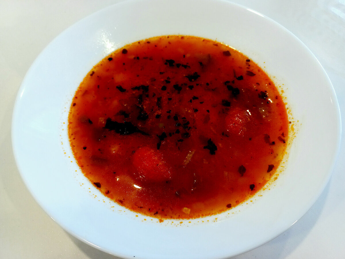 Суп харчо из говядины с рисом Ингредиенты: • говядина на кости – 1 кг • питьевая вода – 2,5 л • рис – 120 г • томатная паста – 2 ст. л. • репчатый лук среднего размера – 1-2 шт. • морковь - 1 шт. • растительное масло – 2 ст. л. • лавровый лист – 1 шт. • очищенные грецкие орехи – 50 г • хмели-сунели – 1 ч. л. • натуральный гранатовый сок без сахара – 125 мл • кинза – 4 веточки • базилик – 4 веточки (можно сушёные) • острый перец – 1 шт. • чеснок – 5 зубчиков • соль, молотый черный перец – по вкусу Приготовление: 1. Приготовьте бульон для этого отварим мясо. 2. Бульон для харчо процедите. Мякоть говядины отделите от кости, нарежьте и сложите в небольшую емкость. Залейте половником бульона и закройте. 3. Бульон для харчо перелейте в кастрюлю и доведите до кипения. Рис тщательно промойте. Всыпьте в кипящий бульон и посолите. В бульон с рисом положите нарезанную говядину и варите на небольшом огне 10 минут. Добавьте томатную пасту и перемешайте. 4. Репч