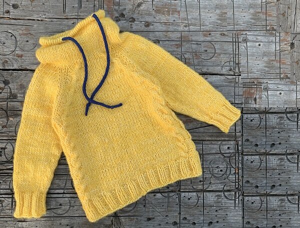 Сегодня расскажу, как можно связать свитер худи на малыша 3 лет. Мои исходные параметры малыша: Обхват шеи - 29 см Длина рукава по боковому шву - 28 см Обхват груди - 55 см Длина по боковому шву - 28 см Полная длина (без ворота) 34 см Нам потребуется: Пряжа из Троицка «Фиджи» — 6 мотков Любая пряжа на ваш вкус для шнура спицы 3,5 мм Моя плотность вязания по высоте в 3 см 6 рядов по длине в 10 см 15 петель Условные обозначения: Р - реглан. Делаем прибавки справа и слева от регланной петли простым накидом. К - коса. Косичка из 4 петель с наклоном к боку. У - убавка. Справа и слева от регланных петель 2 петли провязываем вместе с наклоном к боку. Набираем на спицы 42 петли, распределяем по схеме ( по 12 петель на перед и спинку, по 5 петель на плечи, по 2 петли на реглан). Начинаем наше вязание с вывязывания горловины. Вяжем 5 рядов. В ряду 6 делаем дырочки для жгута (примерно по 5 петель справа и слева от центра). В ряду 7 делаем над ды